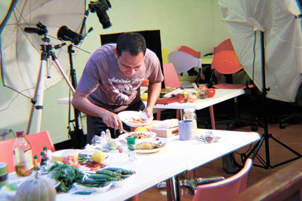 The food stylist works a lot with the chef and the photographer. He makes sure that the dish is prepared for shooting and not for consumption. It means that the only consideration is the visuals, not the taste. The taste comes in when the customer decides to buy and that’s another story.