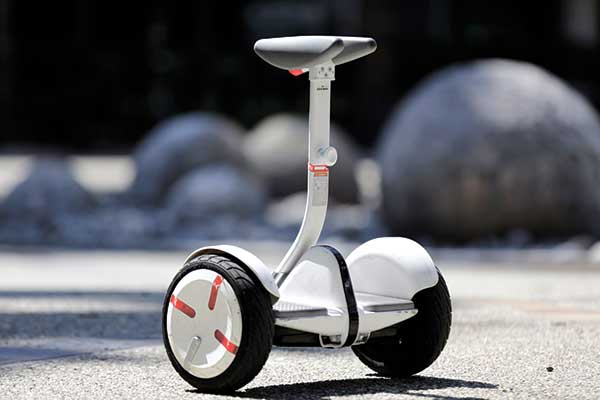 This two-wheeled electric vehicle zooms forward when you lean forward and slows down or rolls backward when you lean back. To turn, you push a steering stick between your legs left or right. You can spin in circles if you want.