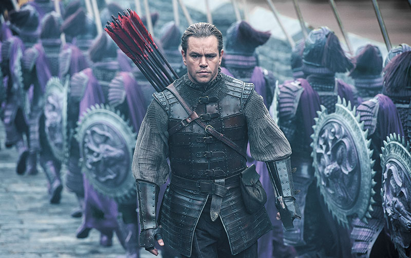 Six writers are credited for the script and story, which centers on a medieval Irish mercenary, William Garin (Damon), who has come to the Gobi Desert in search of “black powder,” that is, early explosives. Though many feared Damon’s character was another example of Hollywood’s fondness for “white saviors,” he is less a heroic protagonist than an audience stand-in for a lavish pageant celebrating Chinese values and valor.