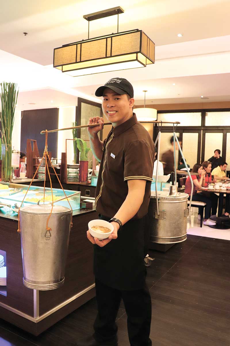 Giving you that true Cebuano street vibe is the tahô guy who delights every guest at breakfast as he carries in his shoulders the tahô. A staple food that locals continually seek in the streets of Cebu and finding it in a rather fancy restaurant is a happy sight to see as it gives you comfort in dining like no other food can.