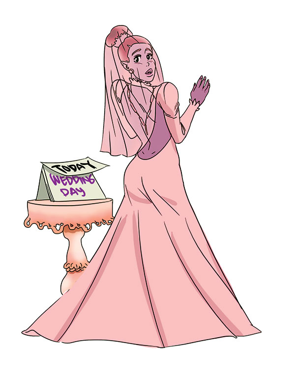 The bride should not fit the dress the day before the wedding because the wedding might not push through.