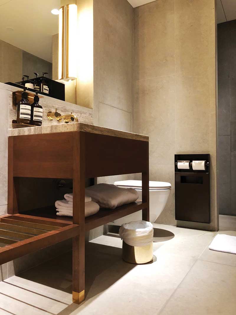 Oh, what a joy! I took my time in the shower, pampering myself with Aesop in a luxuriously-designed bathroom equipped with a powerful rain shower. I walked out of there feeling like a million bucks.