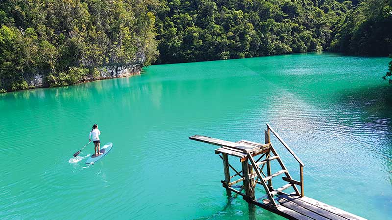 Stand-up paddle in this majestic body of water in the town of Del Carmen, home to one of the largest mangrove systems in the Philippines. Take a moment to enjoy the tranquility of this not-so hidden gem and its expansive, still waters.