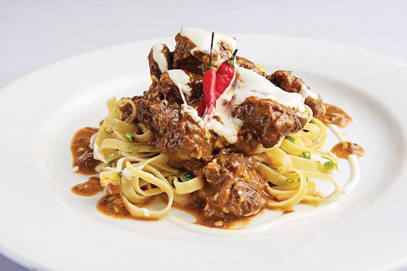 Your kanto-kiosk kwek-kwek levels up with a tempura batter treatment and assorted dipping sauces. The distinctively gamey taste of goat stewed in the robust, buttery and spicy flavors of the classic Caldereta figure with fettuccini in their Caldereta Pasta. What first comes across as highly unusual is later no stranger than your Italian Osso Bucco. The Three Billy Goats Gruff again came out to play, this time on a hot plate and smothered with melty cheese in the, well Sizzling Cheezy Caldereta. Shanghai takes a backseat Vietnam when the classic spring roll includes shrimp with pork and assorted veg in a crisp, deep-fried wrap in their Vietnamese Fried Lumpia. Plum sauce, think savory Kiamoy flavor, makes a case for multiple dipping instead of the plebeian from-bottle ketchup or sweet-and-sour sauce. An incredibly crunchy crusts yield to soft and succulent meat centers of their Thrice-Cooked Lechon Bagnet. There might have been some Blumenthal in the cooking process but happily resign to dissecting the dish only by chewing through the porky pieces. We finished with a dessert cocktail, Chocnut Martini — your classic, gin-based drink laced with the nutty flavor of the Pinoy childhood and punctuated by sweet swirls of, I’d imagine the local Ricoa brand, chocolate syrup.