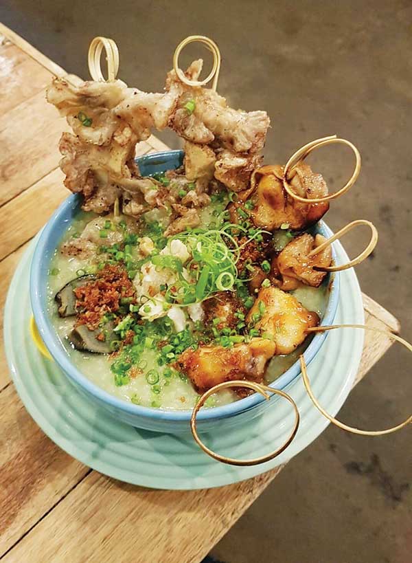 The Filipino language and its transliterations make it rife for puns, and local establishment names are often a deadly combination of bad jokes and brilliant branding. Just a stone’s throw away from Lime is the lovechild of lugaw and David Pomeranz, Goto Believe. Here the Pinoy take on congee allows for more than the usual add-ons and are all served with a good dose of irreverence. Already bursting at my seams, I left the ordering to Danah’s experience and expertise. Our shared order was a “wet” Goto Heaven — “may kasamang twalya (beef tripe), aw ng baka (beef entrails), taba ng baka (beef fat).” Thrown in were some grilled bituka ng baboy (pork entrails), chicharon bulaklak (fried pork intestinal lining) and Century egg to intensify that offal riot. As if the meaty flavors were not enough, we also had a ka-partner (side-order) of Tokwa’t Baboy (tofu and pork).