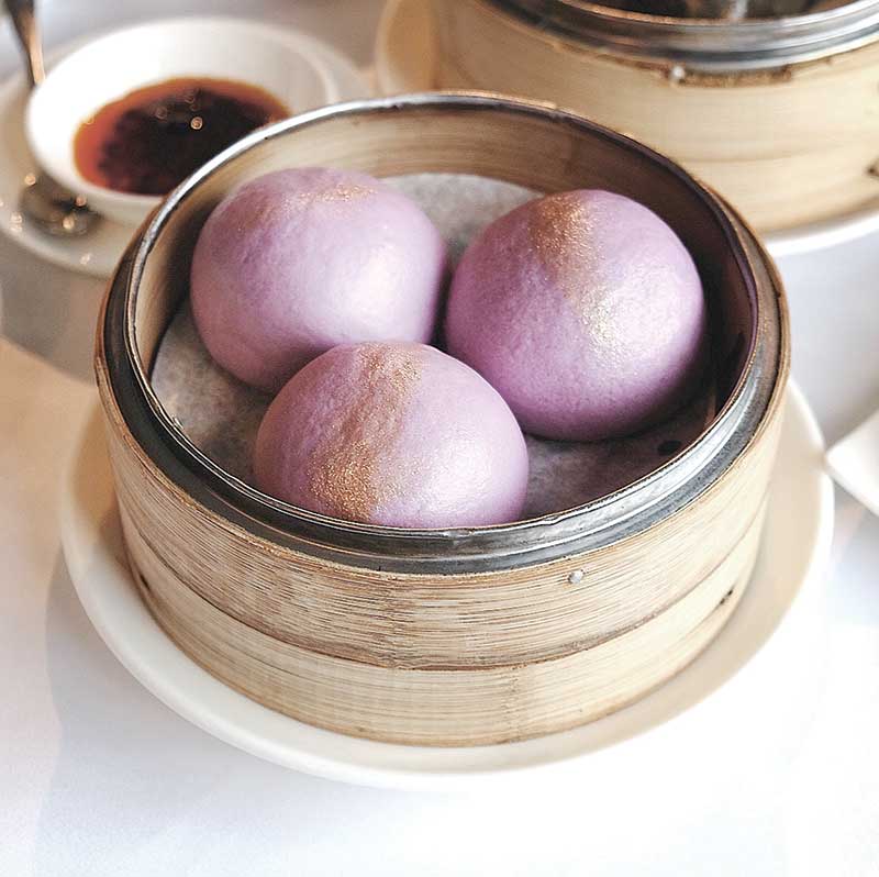 Steamed-Purple-Potato-Paste-and-Salted-Duck-Egg-Yolk-Custard-BunsA Steamed Purple Potato Paste and Salted Duck Egg Yolk Custard Buns