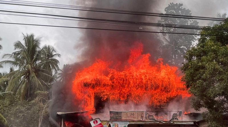 Gipasiritan dayon og tubig sa BFP ang nagdilaab nga kalayo sa nasunog nga tindahan.