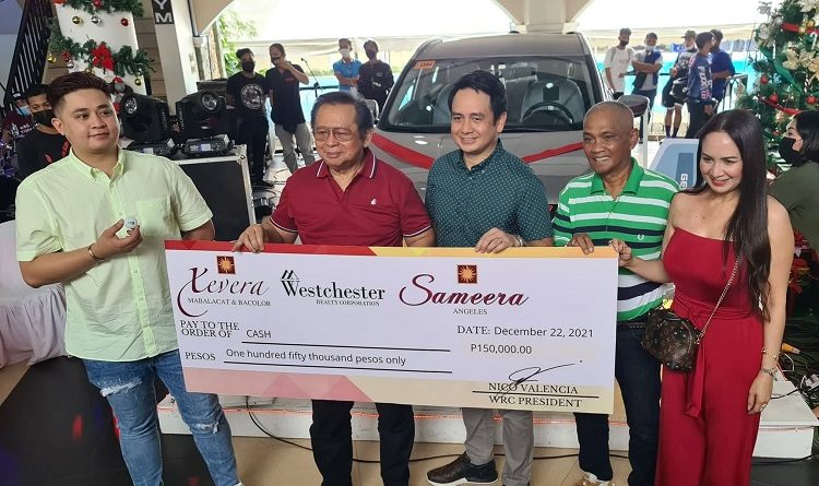 PAMPANGA. RGV Group of Companies Chairman Rodolfo G. Valencia, Westchester Realty Corporation President John Nico P. Valencia, RGV Real Estate Center Inc. President Joanne Marie P. Valencia and Xevera Home Owners Association President Choock Santos awarded the P150,000 check to sales agent Carlos G. Juan during the Westchesters Corp. Grand Christmas raffle draw Wednesday, December 22, 2021. (Chris Navarro)